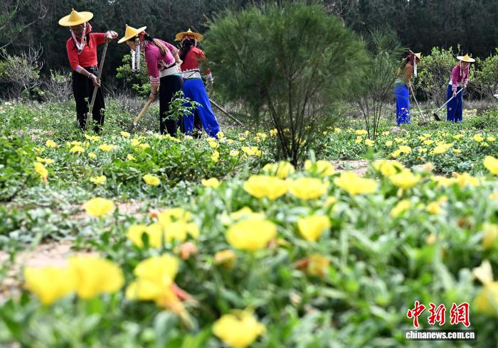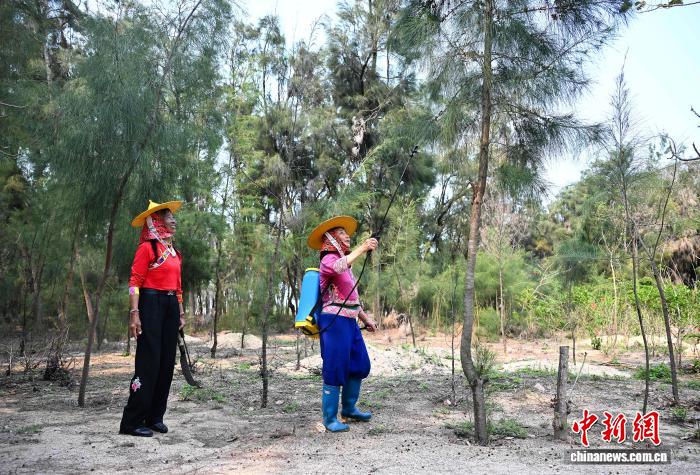 图为4月14日,小岞林场场少旧丽英(左)战惠女护林队员正在林场功课中。20世纪70年月始,旧丽英去到此处并采取留住。通过有数次考查,她取团队成员寻找出“掘沟防风植树”的制林办法。尔后数10年间,旧丽英取百余位惠安女络续搏斗,现已修成超千亩防备林,为2000多米海岸线筑起防风固沙樊篱。中新社记者 弛斌 摄
